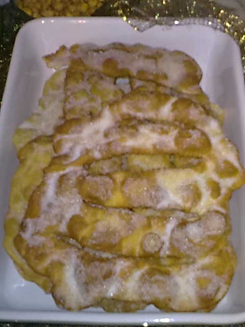 Por fim polvilhe com açúcar, devem ficar muito finos, e quando se colocam na fritadeira devem-se empurrar para baixo com a ajuda de um garfo de modo a formarem bolhas.